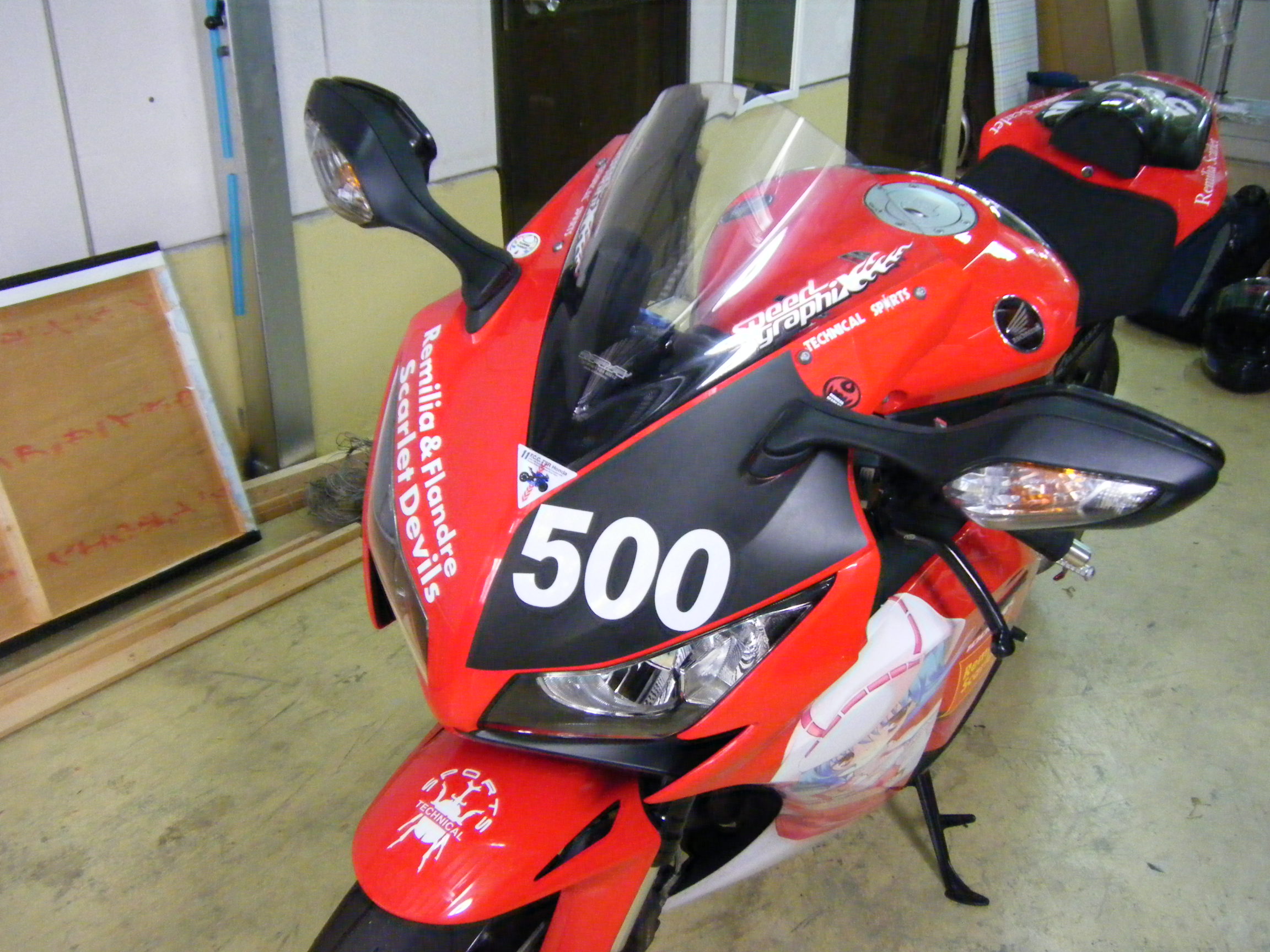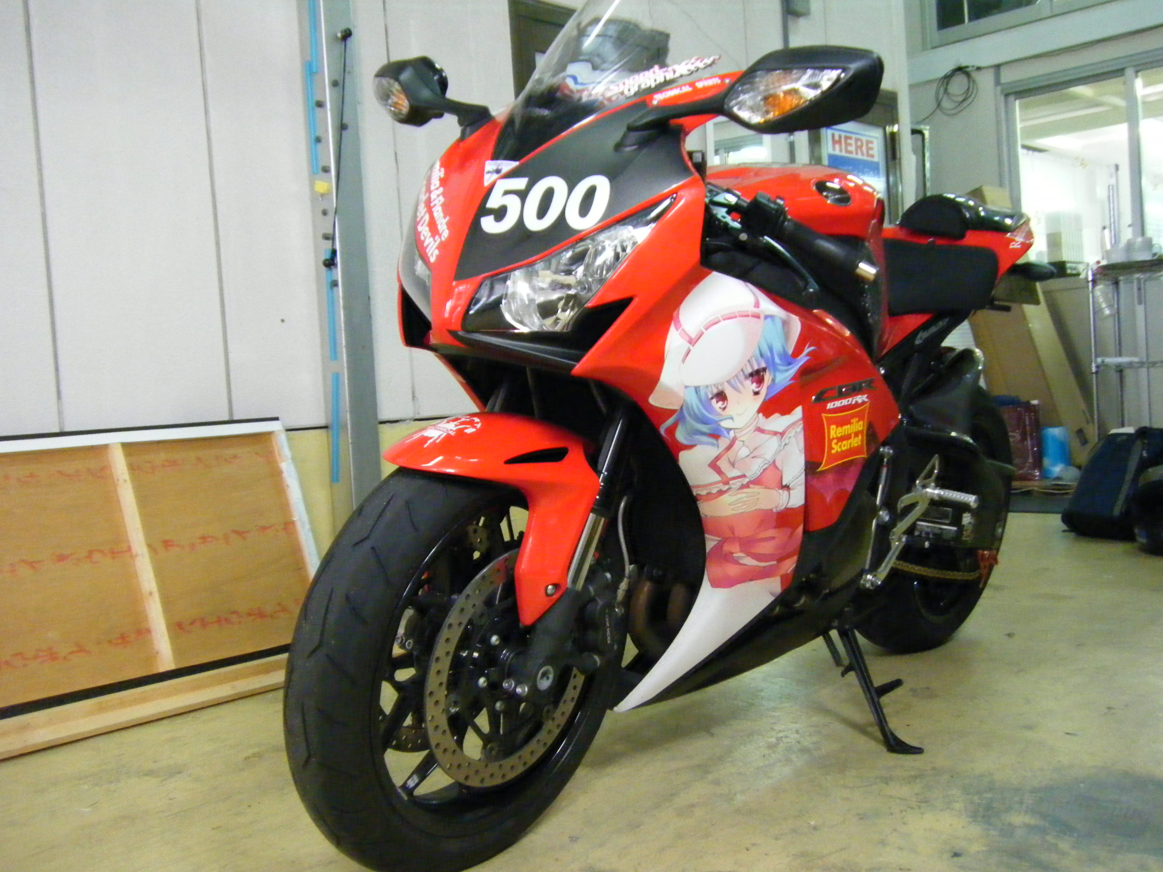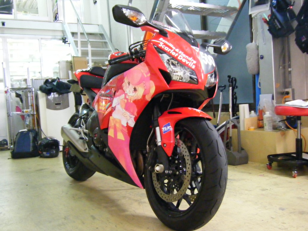 K様の依頼により、CBR1000RRにラッピング致しました。 サイドのキャラが焦げてしまったとのことで貼り直ししました。 また、ヘッドライト上部にマッドブラックのシートを貼ってゼッケンを作成しました。 さらにリヤカウル部の文字修正も行っております。 単車の場合はキャラが切れてしまう部分が出てくるのでお客様との念密な調整が必要になります。 今回はうまく入れれたのではないでしょうか。(*゚▽゚*)